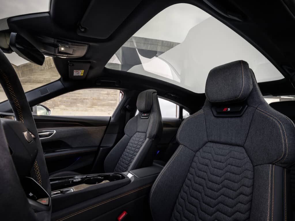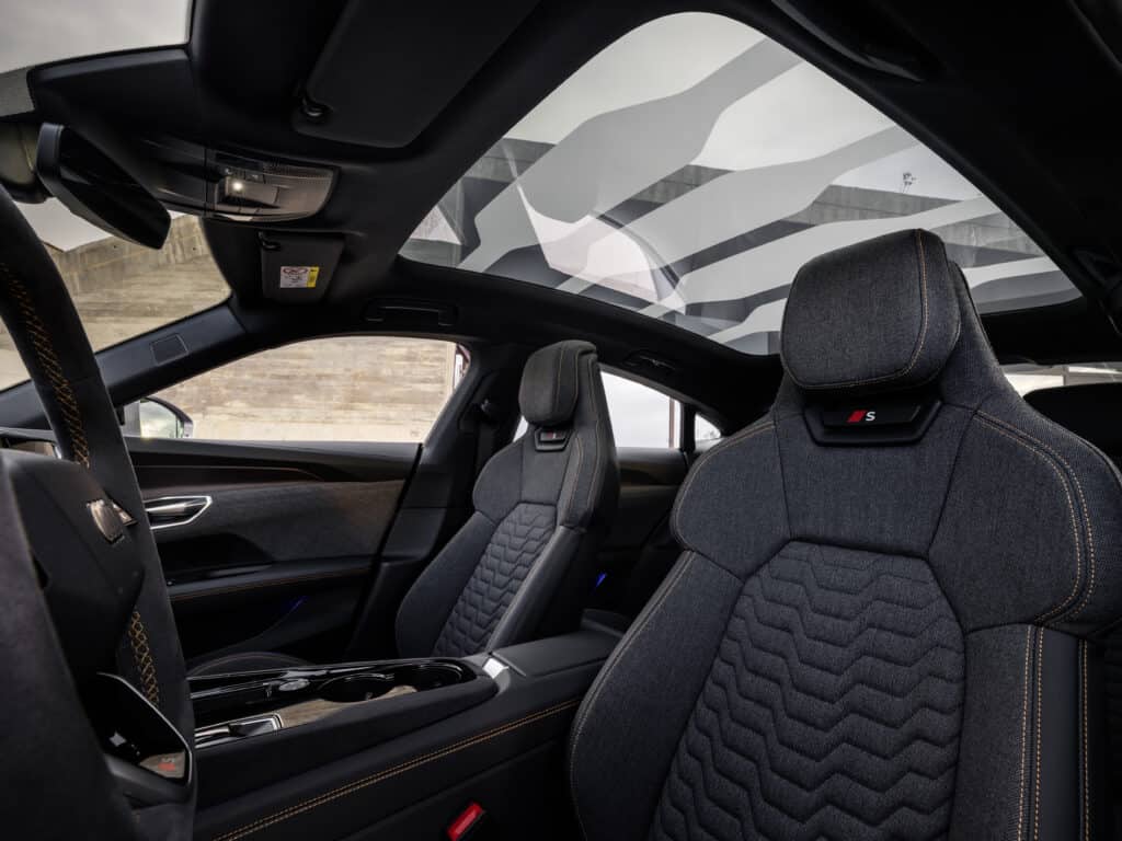 בפנים, מקבל האאודי אי-טרון GT מספר עדכונים בתא הנוסעים, כולל הגה בעיצוב מעודכן ותוספת של פרטים חדשים על מצב הסוללה המוצגים בתצוגה הדיגיטלית שזמינה לנהג (AKA לוח השעונים), כשבגרסאות ה-RS יש אפשרות להחליף את הרקע לרקע לבן, קריצה לאאודי RS2 אוואנט של 1994. מה שעוד ניתן לשנות בלחיצת כפתור זה את כהות הגג הפנורמי, בין שקוף לאטום. בגרסת ה-RS פרפורמנס, הגג מגיע בגימור קרבון-הסוואה.