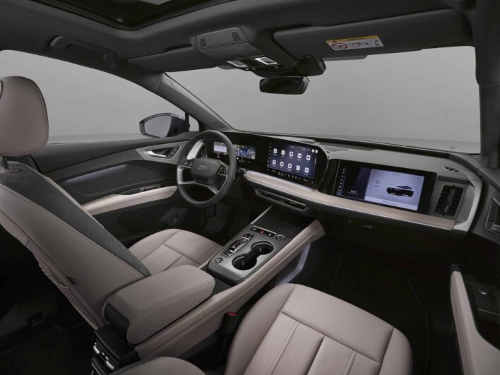תא הנוסעים זוכה לשדרוג משמעותי ולעיצוב מקיף. סביבת הנהג מבוססת על “במה דיגיטלית” חדשה – מערך מסכים פנורמי משלב לוח מחוונים בגודל 11.9 אינטש עם מסך מולטימדיה מרכזי בגודל 12.8 אינטש. בנוסף, מוצע כאופציה מסך נוסע קדמי בגודל 12 אינטש. מערכת המולטימדיה מבוססת על Android Automotive OS וכוללת גישה לאפליקציות דרך חנות האפליקציות של אאודי.