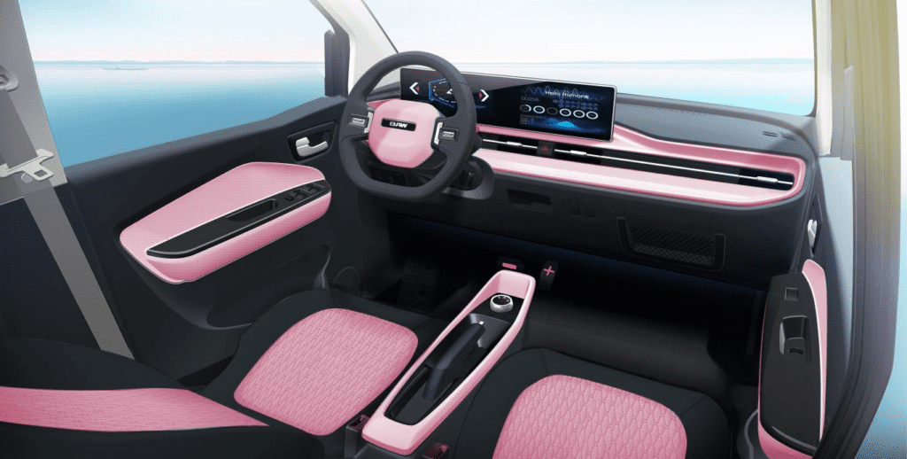 תא הנוסעים כולל שני מקומות ישיבה, צמד מסכי תצוגה דיגיטליים שמתמזגים לאחד וחיבור בלוטוס ו-USB. תא המטען מפתיע בגודלו, עם נפח מוצהר של 750 ליטרים ועם אורך של 315 ס"מ ורוחב של 150 ס"מ בלבד, מדובר בפתרון המושלם למי שסובל ממצוקת חנייה.