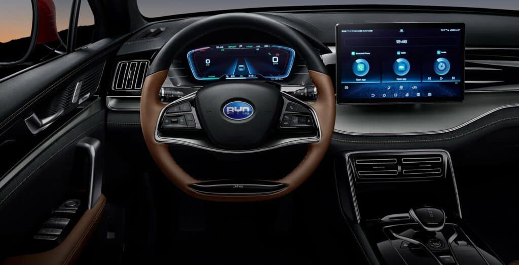 בדומה לדגמים החשמליים האחרים של BYD, מערכת המולטימדיה מאפשרת ממשק עם הסמארטפון ועם יישומי צד שלישי אך היא אינה תומכת באנדרואיד אוטו ובאפל CarPlay. עם זאת, הקונסולה המרכזית מסתובבת ויכולה להציג בצורה אופקית או אנכית. הרכב הגדול מצויד בפתחי אוורור רק בצדו הקדמי, ובמיקום נמוך למדי,כך שאולי יהיה קשה לו להתמודד עם הקיץ הישראלי הקשוח.