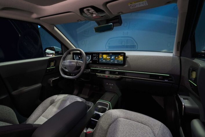 סביבת הנהג מצוידת בשלושה מסכים המסודרים בשורה אחת – שני מסכי 12.3 אינטש – אחד המשמש כלוח מחוונים דיגטלי ואחד למערכת המולטימדיה ומסך 5.3 אינטש נוסף לבקרת האקלים. מערכת המולטימדיה תומכת אלחוטית באנדרואיד אוטו ואפל קארפליי, והיא תומכת גם בעדכונים דרך האוויר (OTA).