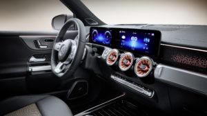 בפנים, ניתן לראות לזהות לא מעט אלמנטים שקיימים גם בדגמים בעלי מנועי הבעירה הפנימית של מרצדס – כמו ההגה ופתחי האוורור העגולים. יש מסך תצוגה מרכזי גדול שמתמזג עם מסך התצוגה לנהג ואת מערכת המולטימדיה של מרצדס, ה-MBUX, שכוללת הפעלה קולית – דרכה ניתן להפעיל מגוון פונקציות ב-'היי מרצדס'.