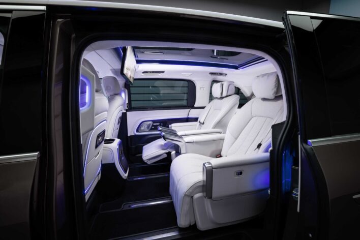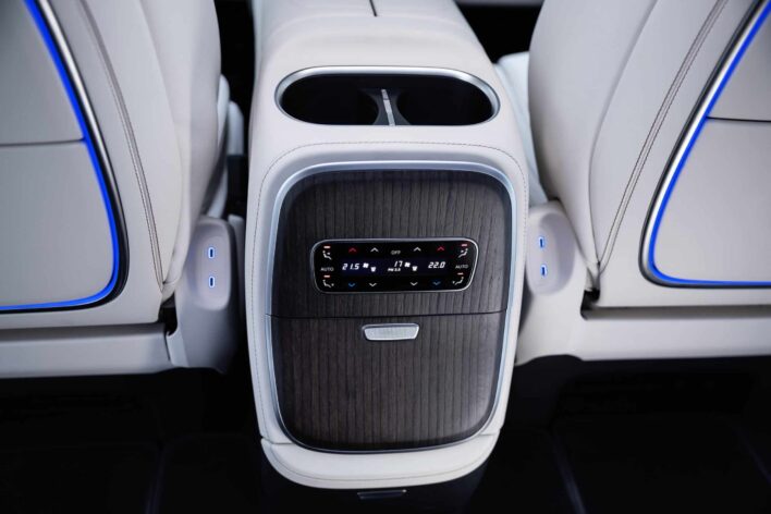 הנוסעים מאחור יכולים להנות ממסך ענק בגודל 31.3 אינטש, שמתקפל מתקרת הרכב ויכול לשמש לצפייה בסרטים, משחקים ואף לשימוש בפגישות, יחד עם מצלמת 8MP, מערכת שמע עם 22 רמקולים, בקרת אקלים מפוצלת וכמובן גג פנורמי ענק. רמות האבזור הגבוהות כוללות גם שני תאי אחסון עם בקרת טמפרטורה (קירור או חימום), תאורת אווירה, מערכת טיהור אוויר ועוד.