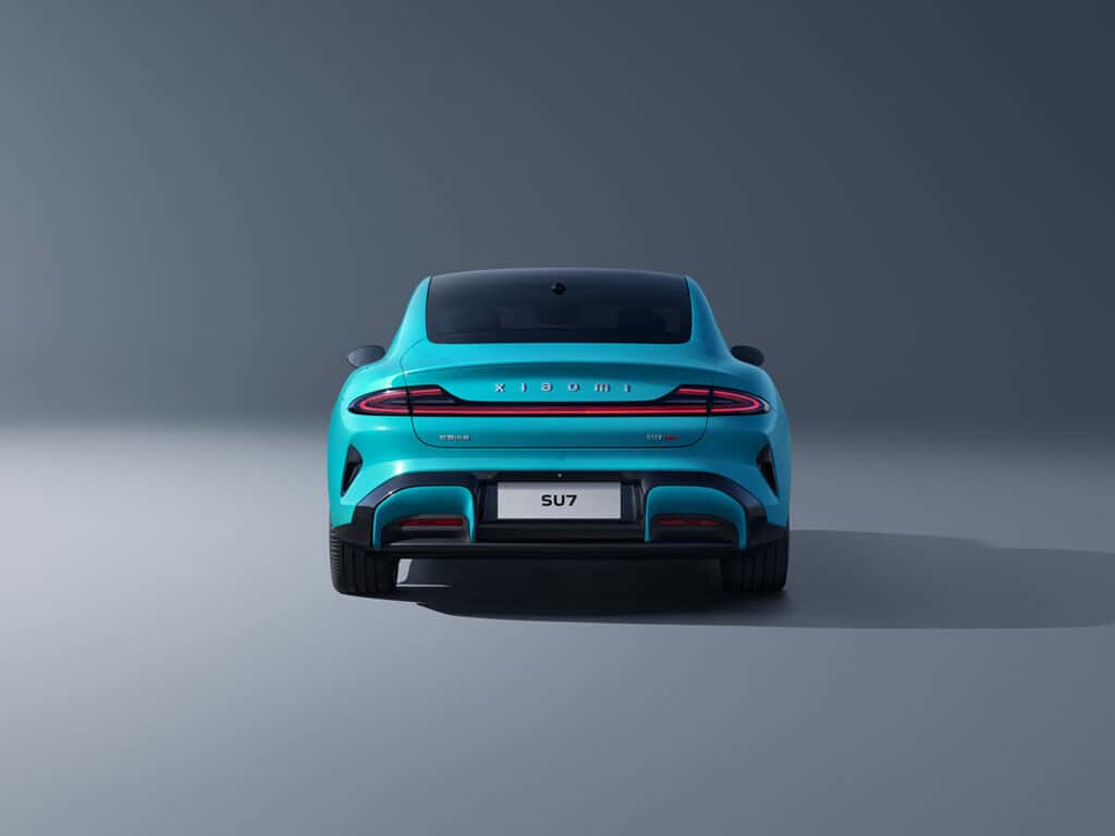 זה לא ממש משתקף מהתמונות אך בפועל, ה-SU7 נמתח לאורך של כמעט 5 מטרים (4,997 מ״מ), בדומה למודל S של טסלה. יש לו שני תאי מטען, אחורי בנפח של 517 ליטר וקדמי בנפח של 105 ליטר. ה-SU7 של שיאומי יהיה זמין ב-3 צבעים – כחול אקווה (בתמונות), אפור או ירוק זית.